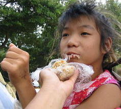 立ち直りも早いめが丼。 ![]() さて小腹がすいた頃いいタイミングでジョン君のパパさんがおにぎりいただきました♪いただきます♪ |