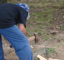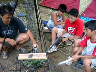 ![]() 今回のキャンプほど薪を使った焚き火はなかったのでは?朝から薪割り大変ジョン君のパパさん |