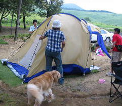 ![]() いい風吹いてテントも片付けやすそうですね。妻の手いらず。 テントさえかたづければ、あとは雨降ってもいいぞー。 |