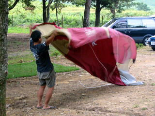 ![]() 雨降る前にテントかたづけよー♪判断は◎です♪ |