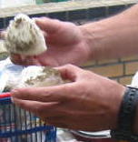 みーたーぞ〜〜〜、白い塊は なに?????3秒ルール????すかさず拾ったジョンパパ。![]() うはは、二個「黒ごまおにぎり」といきましょー。さて だれの口へ〔謎〕って よそ向いても無理ですジョン君のパパさん、ってばればれだす↑ |