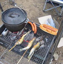![]() nagomi家ホットドッグにかわいいDoの中は何入ってる????? 昨日の鮎も3匹残ってるやん。!!こりゃ一匹いただきやな。にやり♪ |