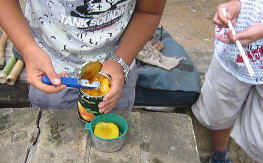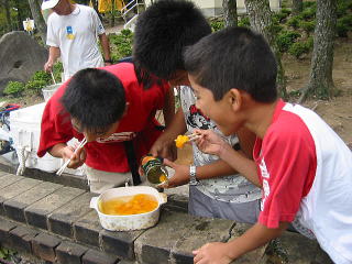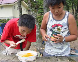 あ、缶詰が あまっちょった。!!!こりゃ食ってもらわんともって帰るのは重い!![]() とりあえず、みかんとパイナップルあけました。。、あっというまにごちそうさま???うそー!!もう食ったん? また追加っす。皇帝があけます。。。みんな箸が、かまえています。。〔爆〕こりゃ缶 開ける人不利です。ハイ、「ヨーイドン」!! |