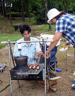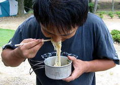 ![]() ![]() わたし!昨日と今日のキャンプでゆっくり味わって食べれたのって、唯一!このジョン君パパのソーメン!! 銀のおわんにほそーい麺。。いい香りのネギにつゆに。。持ち手の細さ。。とってもおいしかったのよー♪ |