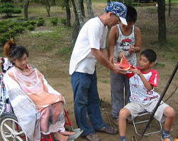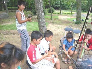 ![]() 「ほーら、乳さわっていよー さわっておっぱい、、、!!」そんな誘惑にも目もくれず、、子供たちは、食い物に手を出しました。。(がくっ) 乳より すいか!!だって。。。 |