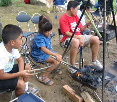 ![]() しつこく「おっぱい、無料!」と誘惑しましたが、、、みんな焚き火に釘つけです。。がくっ |