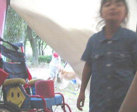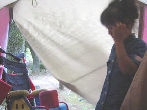 ![]() 昨夜は、この木のおかげで、テントも飛ばずにすんだわよ〜よかったね、 風船おじさんみたいにならなくて、、みんな居ます。無事です!!椅子もあるし全部ある。♪ |
