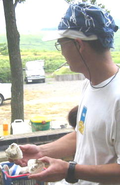 ![]() 朝からバクバク食えるのも昨日、胃をふくらましたおかげ??? visionさんちが作ってくれたパンです♪チーズにハムに、、たけーもんばっかりやん。んまーい。 これ、炭で焼くともっとうまくなるんだよね。♪待てないからこのまま食います |