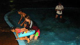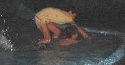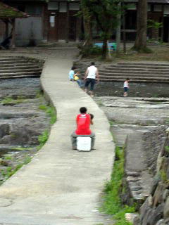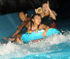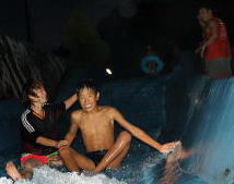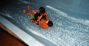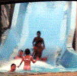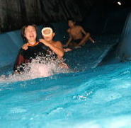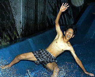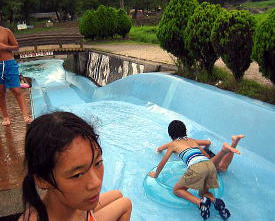 ![]() 一番にぎやかなウォーターすべりだい 幅が広いので子供なら5人くらい並んですべれそうだ。 魚もいっしょにたまに流れてるんだ きれいな水で、足をつけただけでもすっげー冷たい!! |