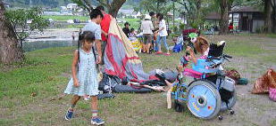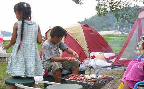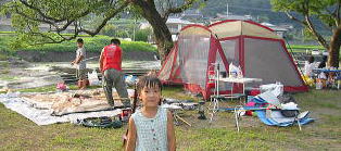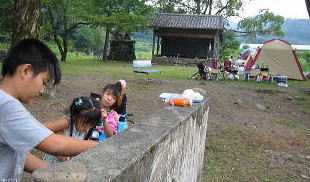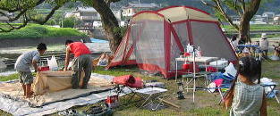 | ■フリーテント1泊 1張り200円(今回タープとテントで400円) 車の横付け不可。中州にあるため、駐車場からがんばって歩きます〔平坦100m位) ■公民館 ■駐車場 200円←入り口の缶に入れます ■外灯2こ(ランタン必要) ■児童用・幼児用プール ジャブジャブ池 (今回は汚かったです) 更衣室 シャワー室 監視棟(かき氷等が売ってました) 休憩棟 |