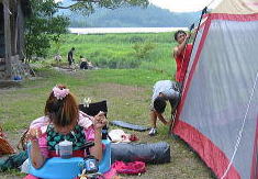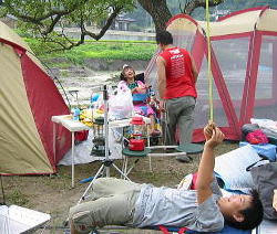 ![]() 16:10 遊びたいがまずは、テント設営。。土曜日でたくさんの人。空いてる所に立てました 下が土石でちょっと痛いかも でこぼこ石は、のけましょ〜〜 |