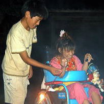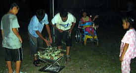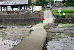 ![]() 荷物運びがよだきー〔疲れる〕 この橋で車乗り入れられないんだ 駐車場から100m位かな。 一番重いクーラーボックスを運ぶとーちゃん!私の大事なビールが山盛り!!がんばれ |