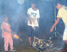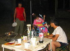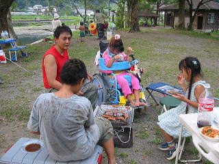 ![]() ![]() ![]() 18:50 昼間バーベキューや川遊びに来ていた人たちは少しずつ帰っていきます。。我が家は早速夕食。焼肉。 |