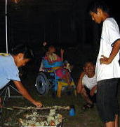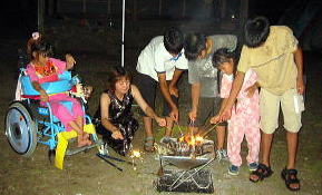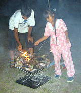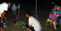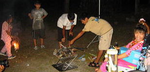 ![]() ![]() ![]() 20:00 焚き火タイム!泳いだ後は あったまろう〜 新聞と このへんに落ちている木を集めてそれぞれ組み立てます |