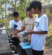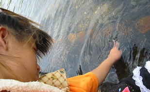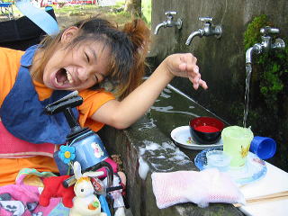 ![]() ![]() 9:50 深い川は気になるのでお父さんと代わってもらいそのあいだに洗い物。美琴にも楽しみあげなくちゃ 手に流れる水があたるだけでも幸せを感じるね |