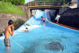 ![]() ![]() ![]() 「魚がすべりだいからすべってくるんだ」って つかまえてる |