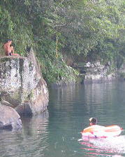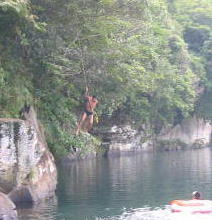 ![]() ![]() ![]() ![]() 裏側は、石 岩がごろごろ。。痛い。。そして深い!飛び込みする場所あり。。こわーい。皇帝は救助隊〔泳げない〕 |