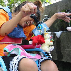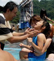 おまけに顔にも刺激を〜〜水をかけるお父さん〜〜(笑)うっくうっく〜〜おぼれる美琴 |