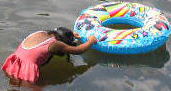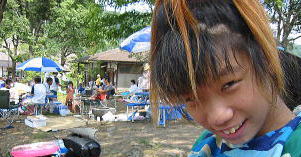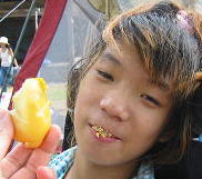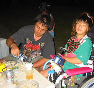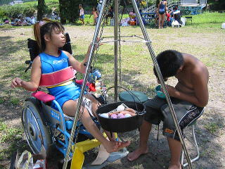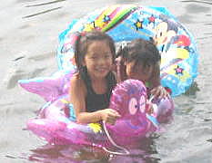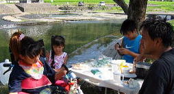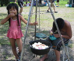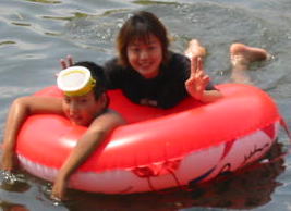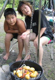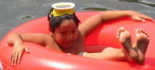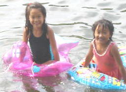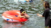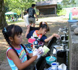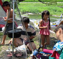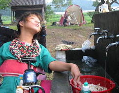 ![]() ![]() めが丼はウインナー一本たべてまた川へ。大分市内から来た子とお友達になって楽しそう |