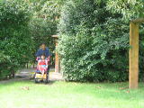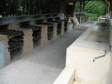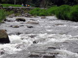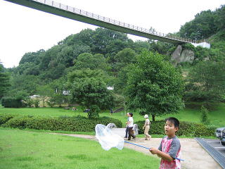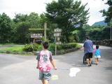 川遊び場は、天気のよいひは快適でしょう。水の深さも子供にちょうどいいですが、雨あがりは川の流れが急です。左河川プールですがそこまで行くためには右の写真のように飛び石を渡って行きます。。。車椅子の我が家にとっては、とても無理です。断念しました
