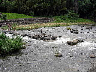 飛び石の場所で誰かスリッパ流されていました