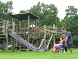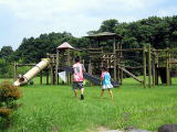 広場には遊具と広い野原。ボールで遊んでもよし、