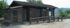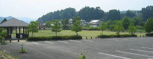 駐車場からすぐ近くの東屋。水道付、テーブル、いすもついてる