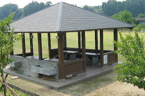 休憩所(東屋)が3カ所あり、その中の1カ所はバーベキューハウスとなっていてここは使われていることが多いようで