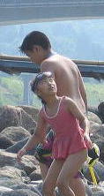 母と美琴は足だけつかる。。もっと入りてーなー