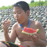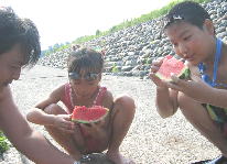 工事していた人が すいかをもってきてくれました