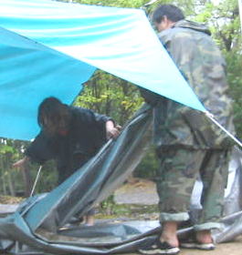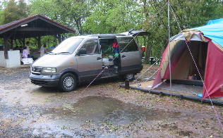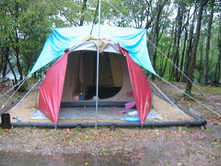 風も時々吹き タープの棒が倒れ「ざばーん」という水溜りが一気に落ちてきてびっくりして目がさめた