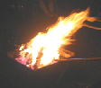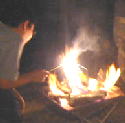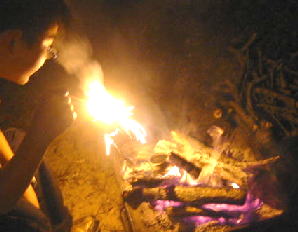 サイトに戻ると焚き火中でした