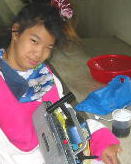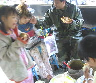 雨が降るとさみーなー。。炊事場で朝ご飯