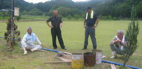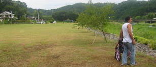 ゲートボール場?と芝生広場 近所の人 「あんたかえ、電話したんは。今日は ここ とまるんじゃろう、