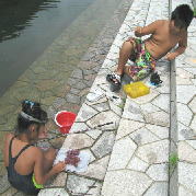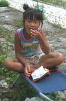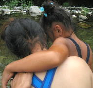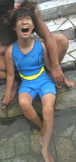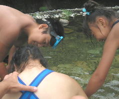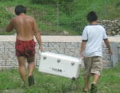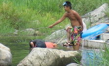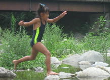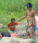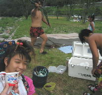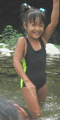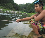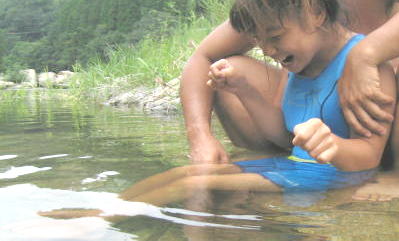 川の水っちほーんとつめてえなー。すぐ寒くなるっちゃ。でもあがると あちーんじゃっちゃ。。