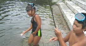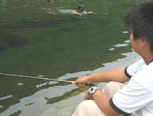 めが丼は飽きて泳ぎ始めた、、その横で釣り、、、めが丼釣らないように。