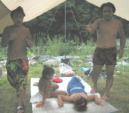 昼、、やっとテントから出てきた「おそよー!」