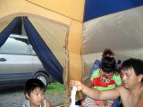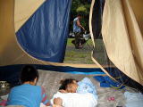 ![]() また雨〜テントの中で待機 何も知らないめが丼 爆睡 |