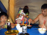 ![]() 食べ始めたとたん雷雨、〜話声が聞こえないテントの中光って3秒内「どかーん」と怖い怖い怖い〜〜〜 |