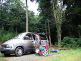 なんてとこだ。道狭い!こんな所にテントサイトあるのかー?みたいな一番奥 一番奥だよ、幸い3組の人がいて、、ちょっと心強いが、、、 |