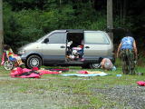 やっと雨やんだよ。よかった。ラッキーいまのうちにかたづけるぞー![]() あちゃーテントびちょびちょ〜どろどろ〜とりあえず無事終了 |