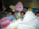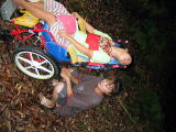 ![]() ![]() ![]() 夜も雷雨〜怖いかーちゃん。ときどきテッポウの音、、猪狩?熊狩り?熊よけ???こわいよー。大雨で床がぷかぷかウォーターベッド〜 原因は、、テントのまわりに置いた葉っぱ??だってこわいんだもん。。とーちゃんが「おまえー戦争やねーんぞ」って。。(汗) |