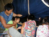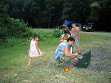 ちょっとやんだ時間にあっちのテントで花火。。タダで楽しもう〜〜たまやーん♪ |