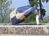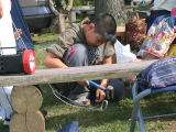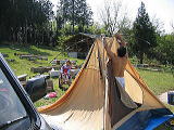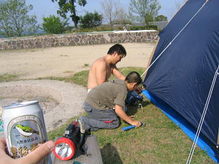 | ペグ打ちも上手になったよ 「うまいうまい!さっすが」 | 汗びっしょりで働く男は かっこいいねー 乾杯!by声だけの母 |