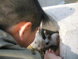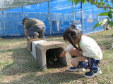 家で飼えなくなったウサギを引き取って 飼ってるそうです とっても広いお庭で幸せそうな ウサギさんです |