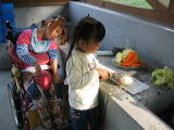 あ〜腹減った 女の出番?野菜切りざくざく適当でええよ! |