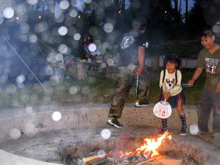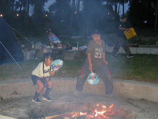 | 子供が大好きな火遊びの時間もキャンプならでは♪いえーい燃えろ燃えろ〜♪ | |