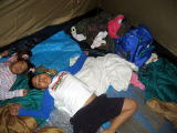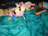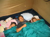 | テントの中の広さは家の寝る部屋と同じ位おやすみ〜 就寝午後10時半 | |