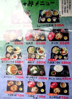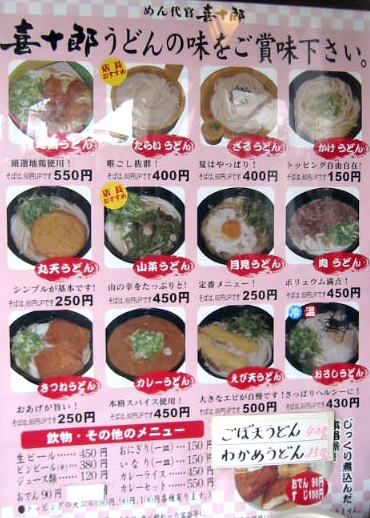 月見うどん250円 肉うどん450円 丸天うどん250円 けけうどん大盛り250円