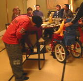 ![]() はまちゃん「こてっちゃん、早く食おうぜ、めったに食べられないぜここの料理!!うめえ」 ![]() こてっちゃん「ふが。ほんとや。うめー。はよたべちょこー」 |
